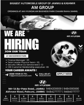 SEND YOUR CV TO :-hr@jammuautomart.com