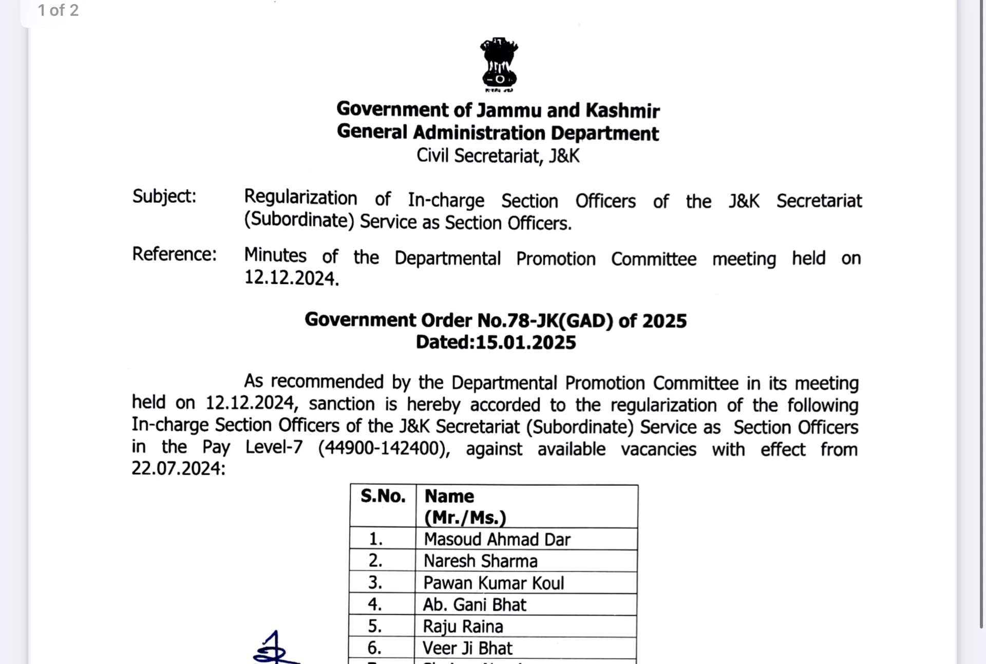 JK Government Refers 281 Vacancies to JKSSB for Recruitment