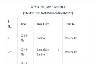 New Kashmir Train Timings 2025-26 for Winter w.e.f 16 October
