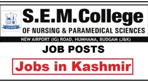 How to Apply: The application affixed with the latest passport size photograph along with self-attested documents/certificates should reach the Office of the Principal Govt. College of Nursing Bagh-i-Dilawar Khan Srinagar within 10 days from the date of Publication during office hours 10:30 am to 3:00 pm.