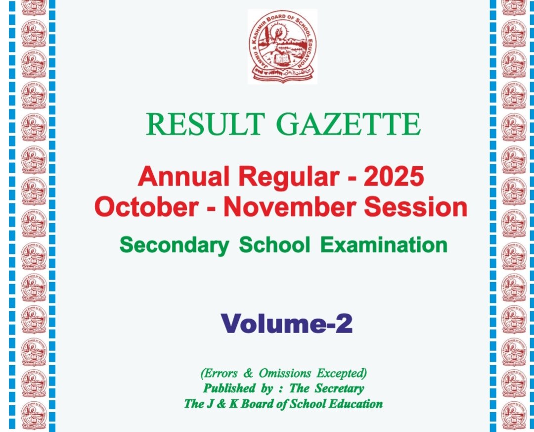 JKBOSE 10th Result Gazette 2025 PDF Link for Kashmir and Jammu.